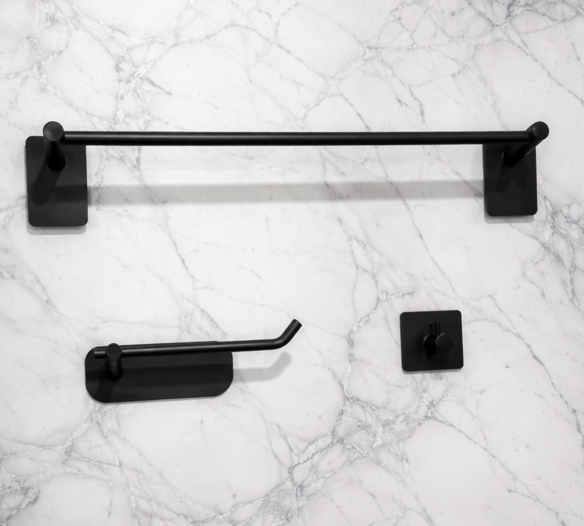Set 3 Piezas Accesorios Baño Linea adhesiva 3M Negro Mate