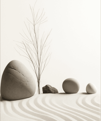 Cuadro Decorativo Zen Minimalista Piedras Arena 28 x 20 Mdf