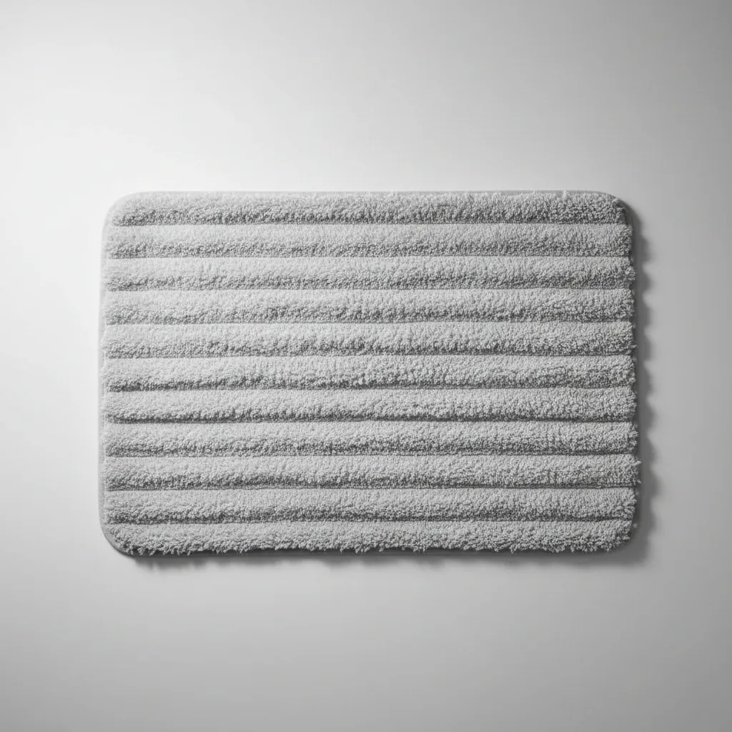 Tipo: Alfombra para salida de ducha. Textura: Superficie extra suave de alta densidad. Color: GRIS (Tono neutro adaptable a cualquier decoración). Diseño: Acanalado de estilo nórdico. Medidas: Ancho: 60 cm. Profundidad: 40 cm. Cuidado y Mantenimiento: Para preservar la suavidad de las fibras y la intensidad del color, se recomienda lavar con agua fría y jabón neutro. Secar a la sombra para mantener la integridad de la base y evitar el uso de blanqueadores abrasivos que puedan dañar el tejido.