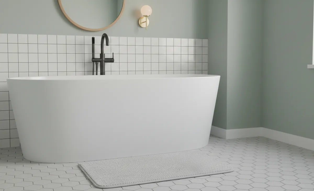 Tipo: Alfombra para salida de ducha con tecnología Memory Foam. Textura: Superficie aterciopelada extra suave de alta calidad. Base: Goma antideslizante de máxima seguridad. Material: Espuma viscoelástica con revestimiento textil suave. Medidas: Largo: 60 cm. Ancho: 40 cm. Color: Gris (Tono neutro premium adaptable). Cuidado y Mantenimiento: Para preservar la propiedad elástica del Memory Foam y la suavidad del acabado aterciopelado, se recomienda lavar con agua fría y jabón neutro. Secar extendida a la sombra para evitar que el calor dañe la espuma viscoelástica o la base antideslizante. No utilizar blanqueadores abrasivos ni cloro.