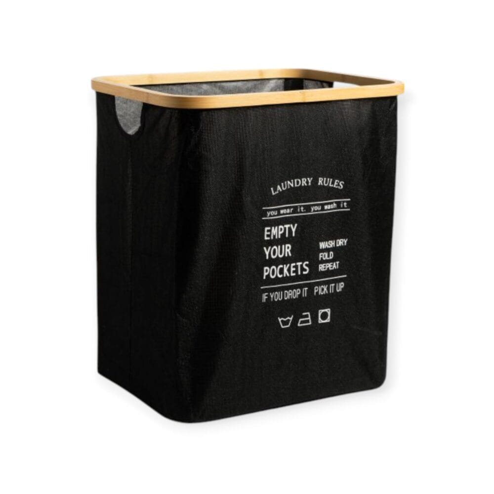Cesto Ropa Laundry Negro Lona Bamboo Rectangular