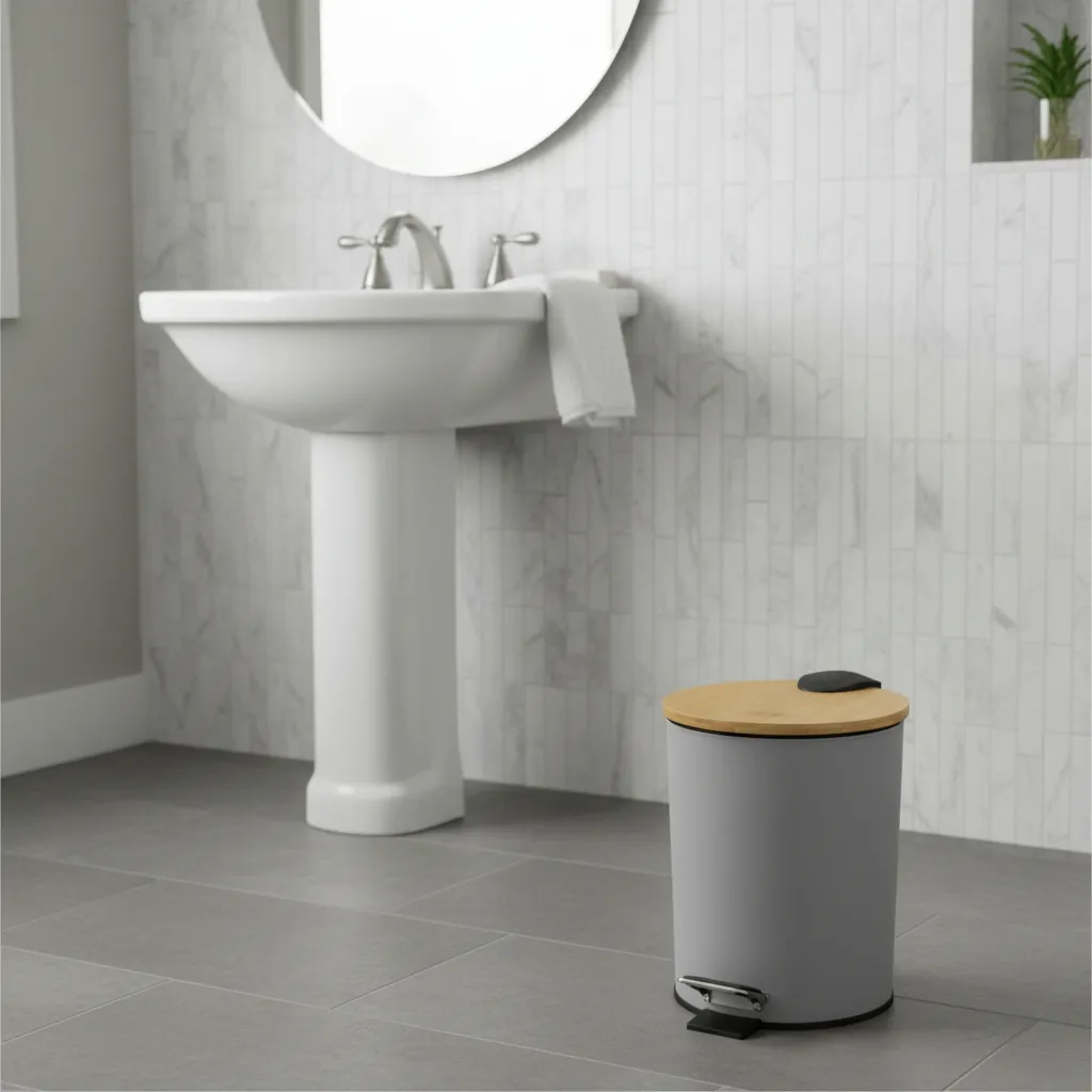 Diseño: Redondo, con balde interno plástico extraíble que facilita la limpieza y el recambio de bolsas.