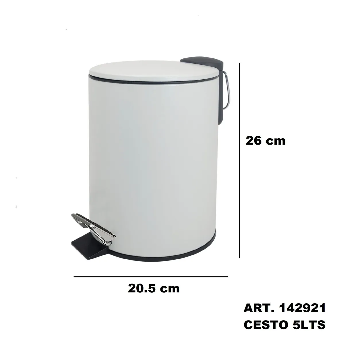 Cesto Tacho Basura 5 Lts Blanco Mate Redondo Cierre Suave