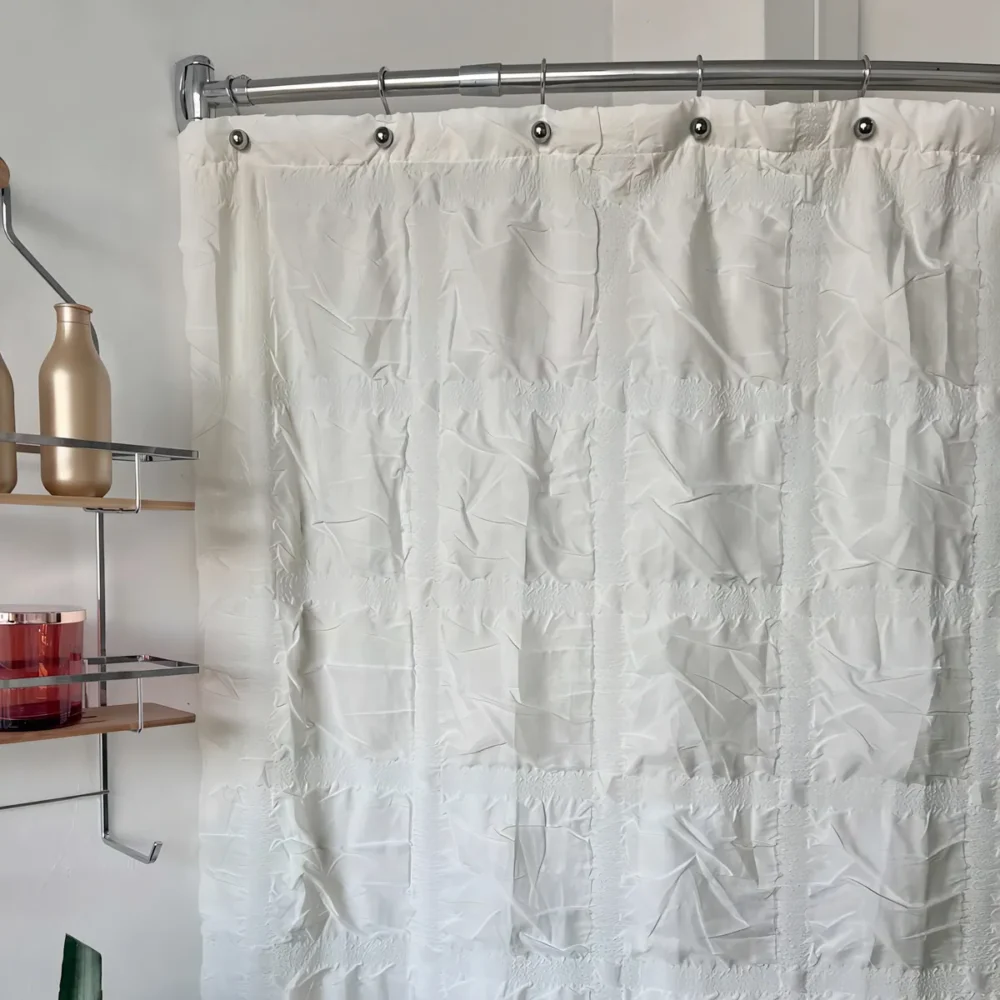 CALIDAD HOTELERA Y DISEÑO EXCLUSIVO. Elevá la estética de tu baño con la cortina Alina Blanca, diseñada bajo estándares de lujo para ofrecer una experiencia Extra Soft al tacto. Su sofisticado diseño de doble capa aporta un volumen y una caída elegante que transforma cualquier espacio en un ambiente de spa o hotelería de alto nivel.