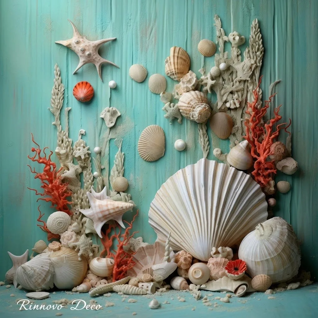 Dale un toque costero y relajante a tu baño con este cuadrito decorativo con temática marina. El diseño detallado de conchas, caracoles y coral en tonos naturales sobre un fondo turquesa brillante evoca la paz de la playa y el fondo del mar.