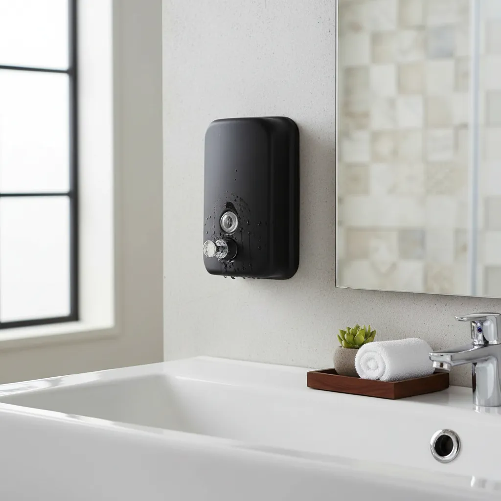 Tipo: Dispenser de pared para jabón líquido o alcohol en gel.