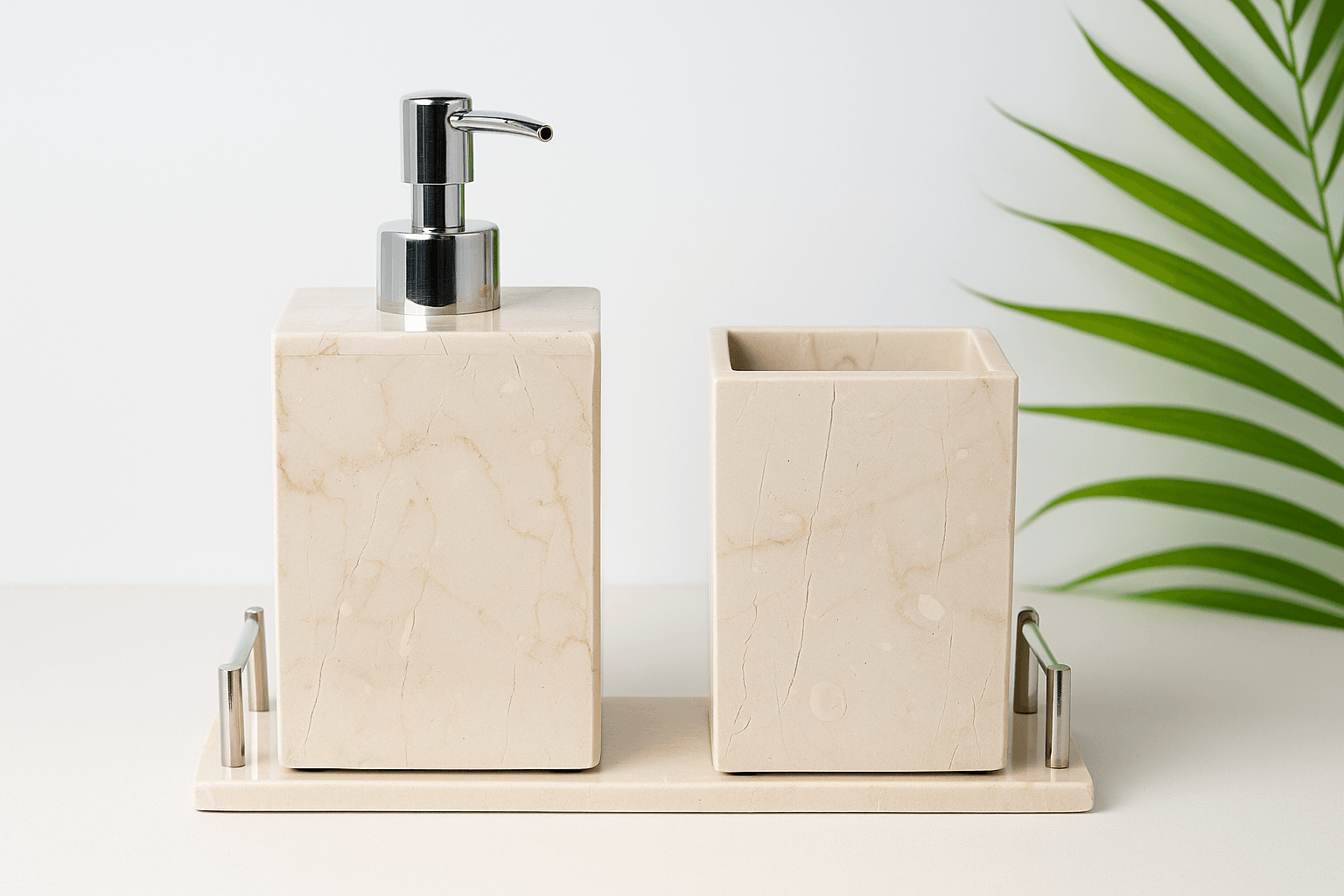 Dispenser Marmol Boticino Dimensiones: 9.50 x 9.50 x 13 cm.