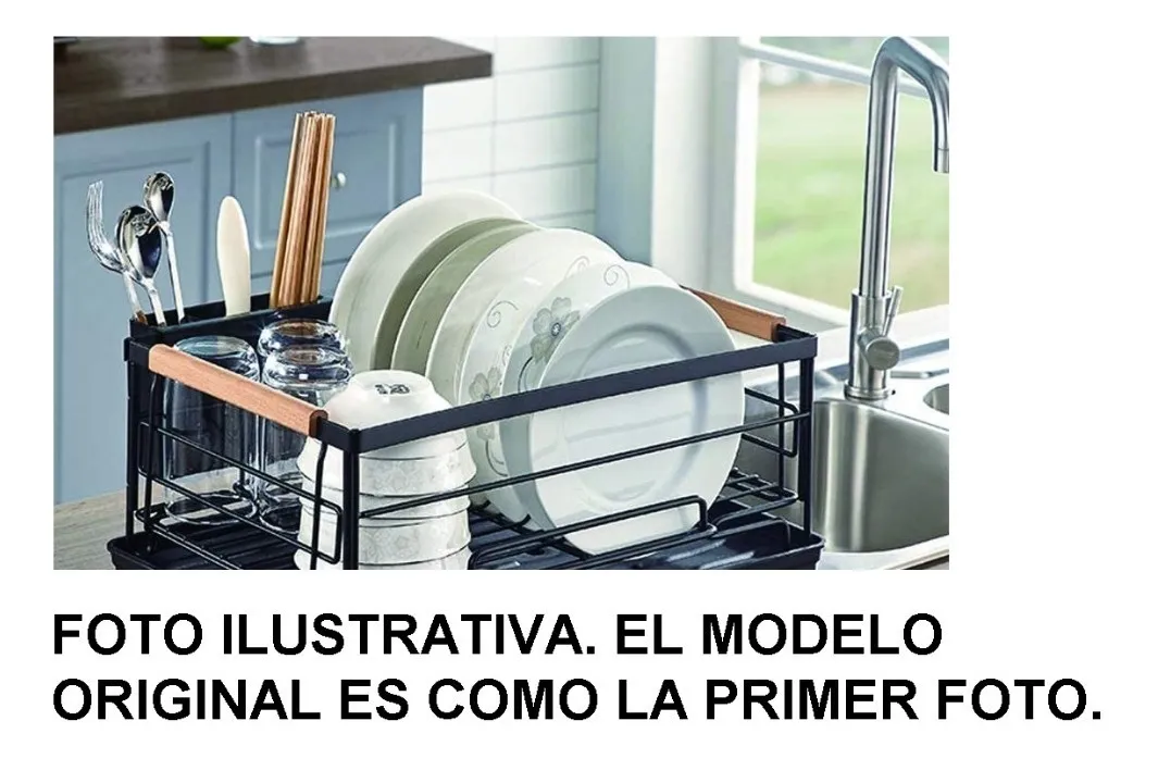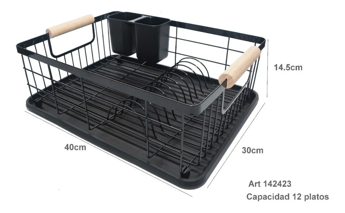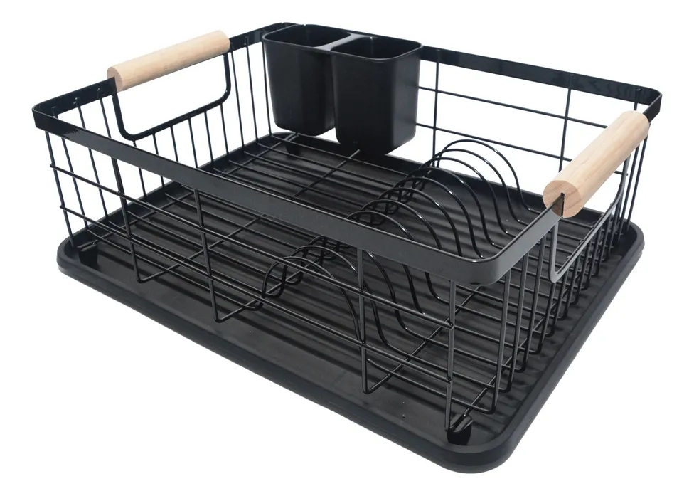 Escurre Platos Cocina Acero Pintado Negro C/ Asas De Madera