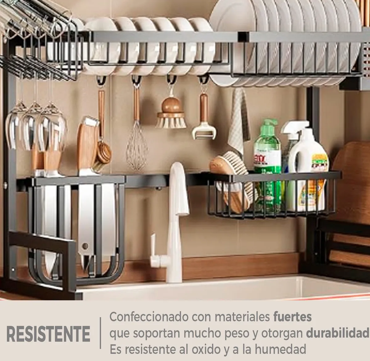 Ahorro de espacio: el organizador de acero inoxidable te da la capacidad que necesitas para organizar tus platos y utensilios y mantenerlos todos al alcance de la mano. Ahorra mucho espacio y tiempo, lo que hace que tu cocina esté más limpia y ordenada.