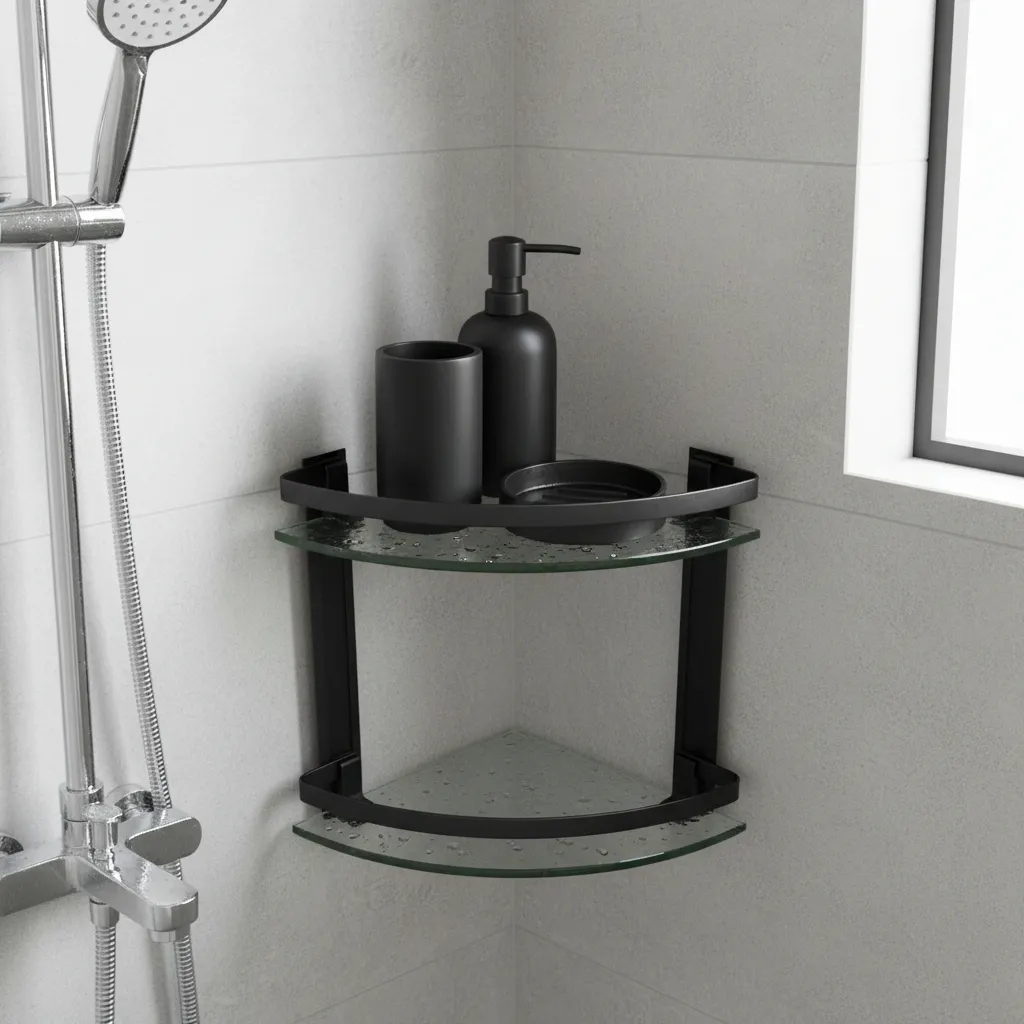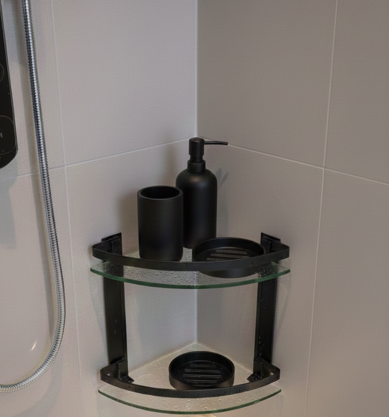Esquinero Doble de Vidrio y Aluminio Inoxidable Negro Mate