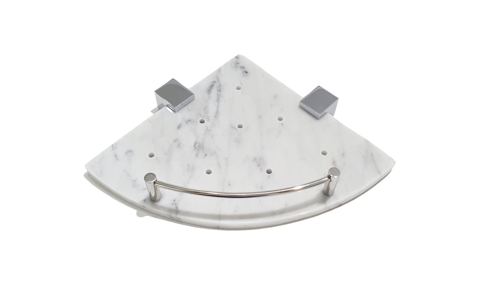 Estante Organizador Esquinero Moderno de amurar. Material Bronce y acero inoxidable.