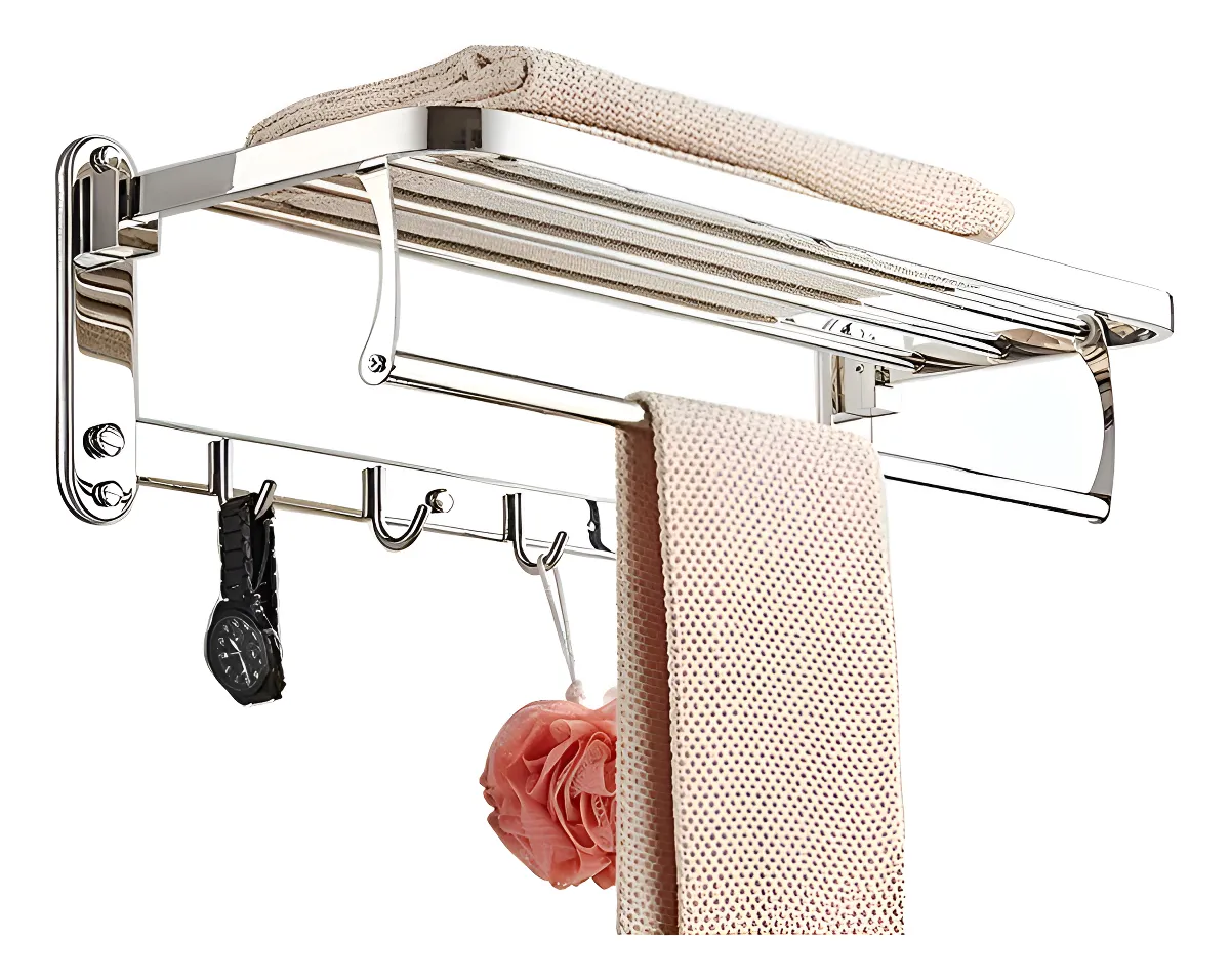 Optimiza tu espacio con este toallero de acero inoxidable 304, ideal para baños modernos y funcionales. Su diseño plegable y multifuncional permite colgar y organizar toallones de manera eficiente.