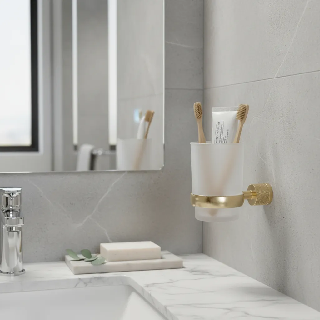 Griferia Lavatorio de Pared Peirano Metal Fabric Gold Cierre Cerámico.