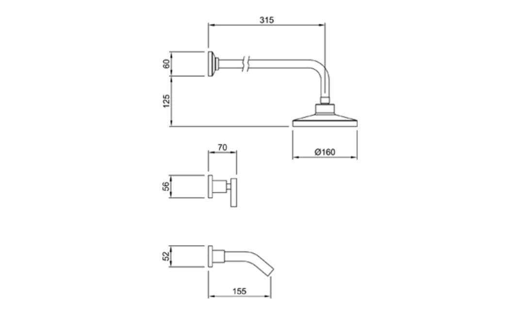 Ducha de embutir con transferencia acabado cromado de la Línea Valencia.