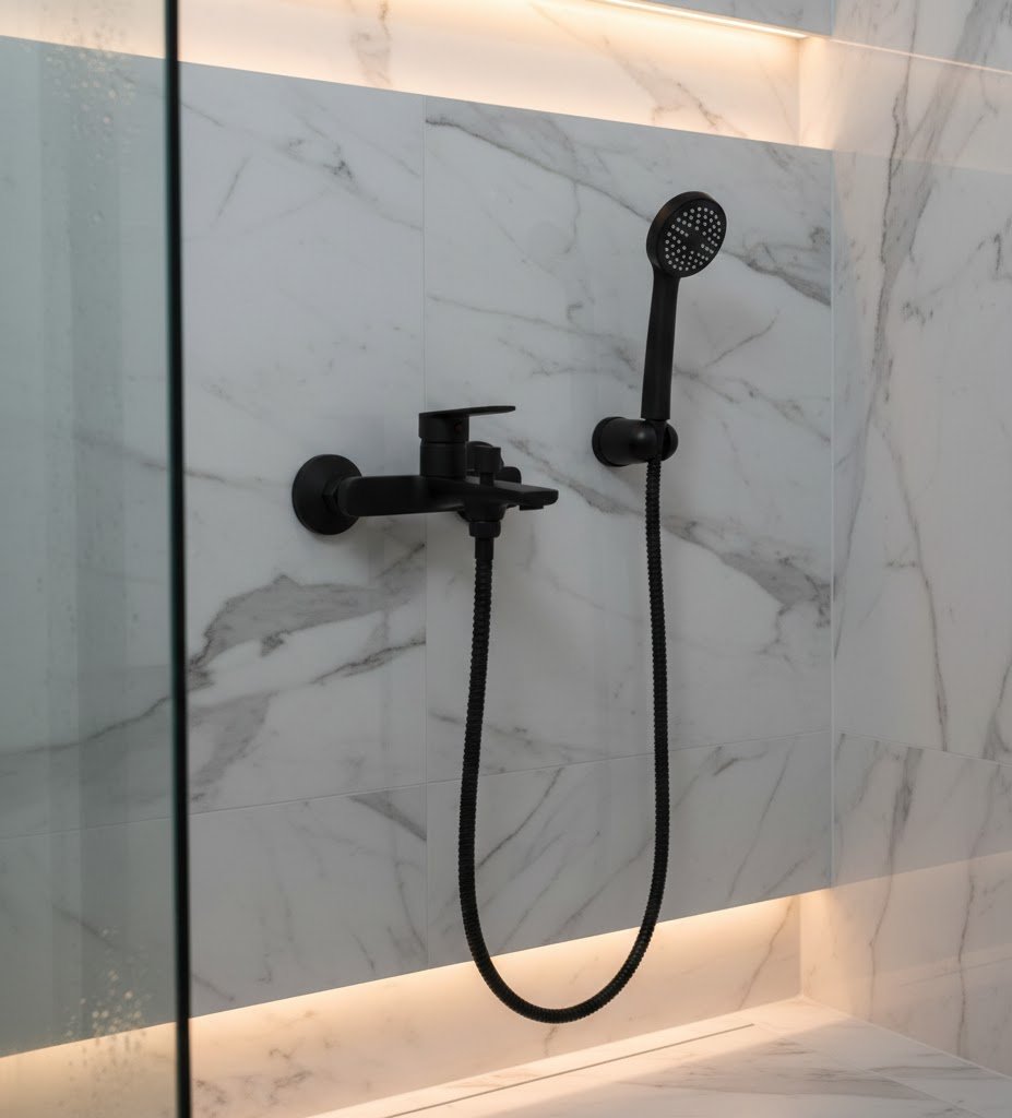 Ducha de embutir con transferencia.