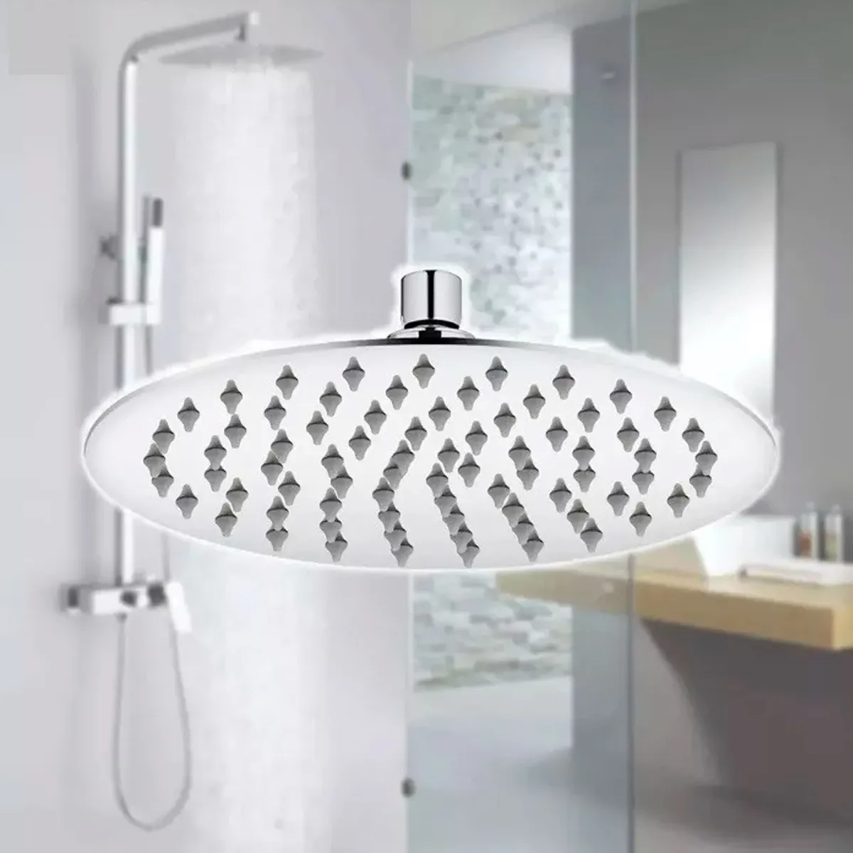 FLOR DE DUCHA Esta ducha de lluvia redonda de acero inoxidable de 8 pulgadas presenta un acabado Cromo elegante y está diseñada para instalación en el techo en baños. Hecha de acero inoxidable 304 duradero, asegura un flujo de agua a alta presión (0,6-0,8MPA) mientras ofrece una funcionalidad ecológica de ahorro de agua.
