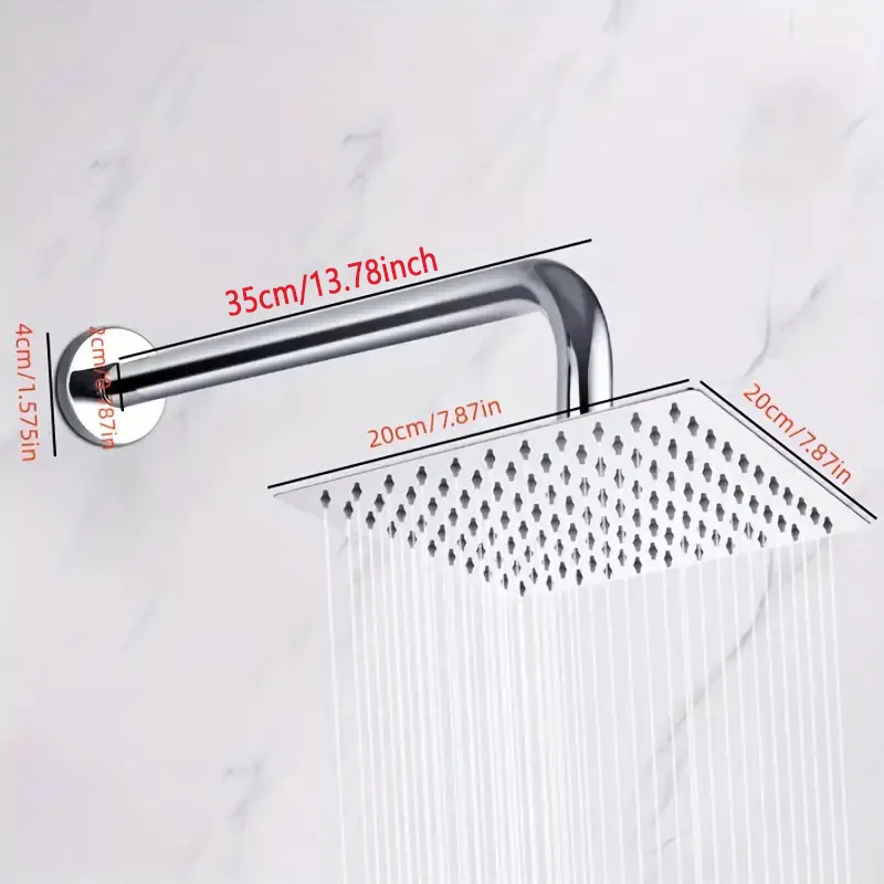 Esta ducha de lluvia Cuadrada de acero inoxidable de 8 pulgadas presenta un acabado Cromo elegante y está diseñada para instalación en el techo en baños. Hecha de acero inoxidable 304 duradero, asegura un flujo de agua a alta presión (0,6-0,8MPA) mientras ofrece una funcionalidad ecológica de ahorro de agua.
