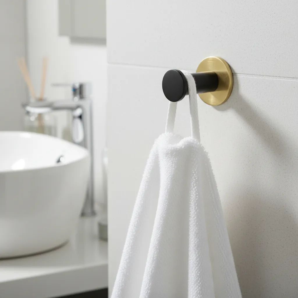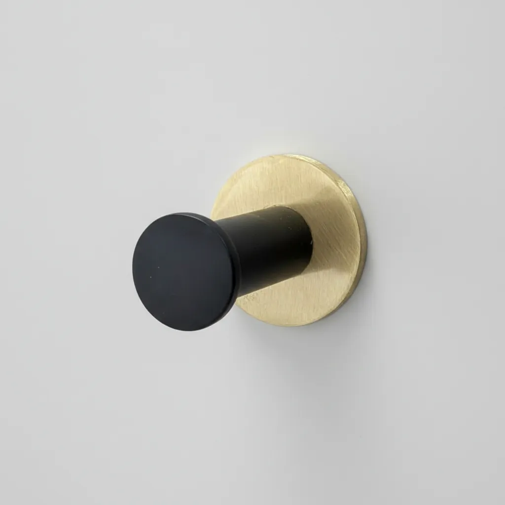 Percha de amurar. Bronce pintado en negro mate. Roseta pulida mate con laca.