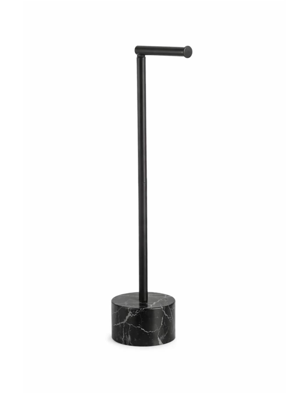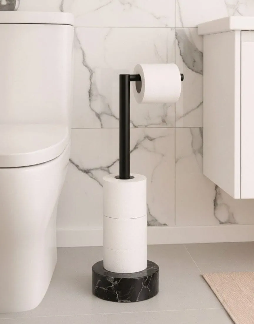 Porta Rollo Papel Higiénico De Pie Negro Mate Base Simil Mármol Marquina