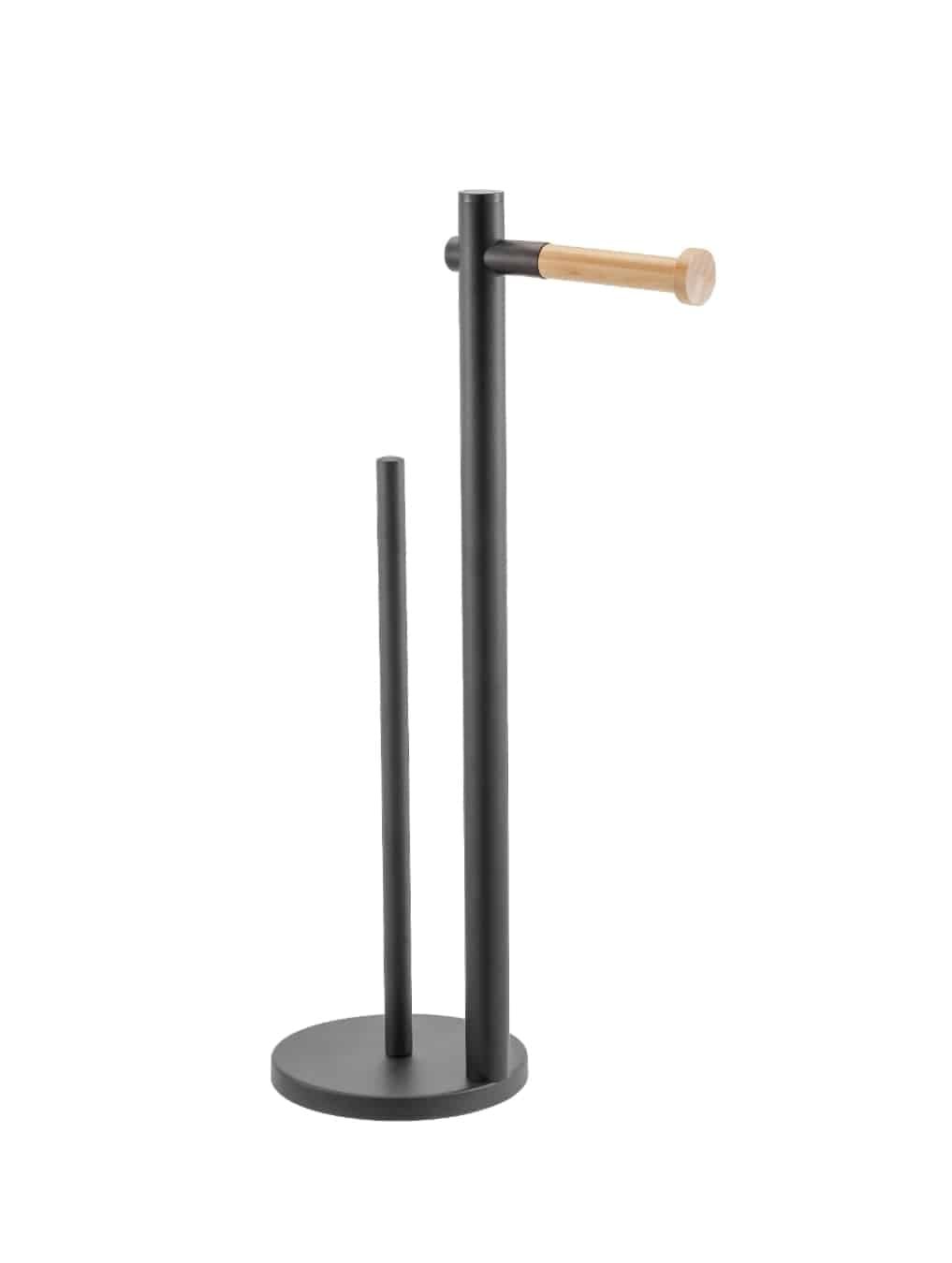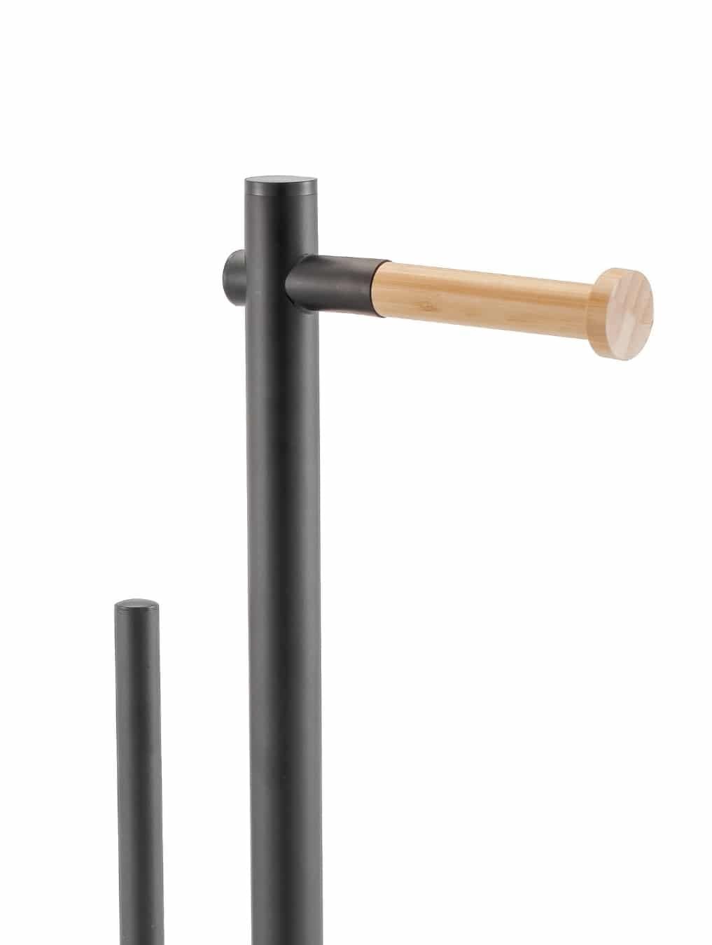 Porta Rollo Papel Higienico De Pie Negro Mate y bamboo