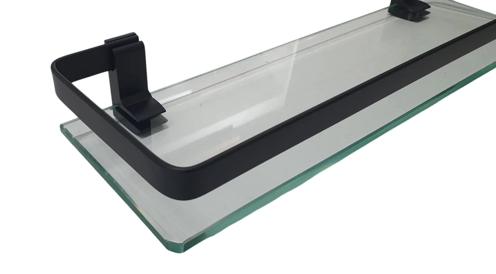 Repisa Estante de Vidrio con Baranda Negro Mate
