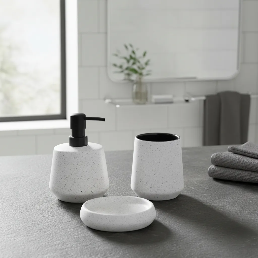 Set 3 Piezas Baño Cerámica Dispenser Vaso Jabonera Blanco