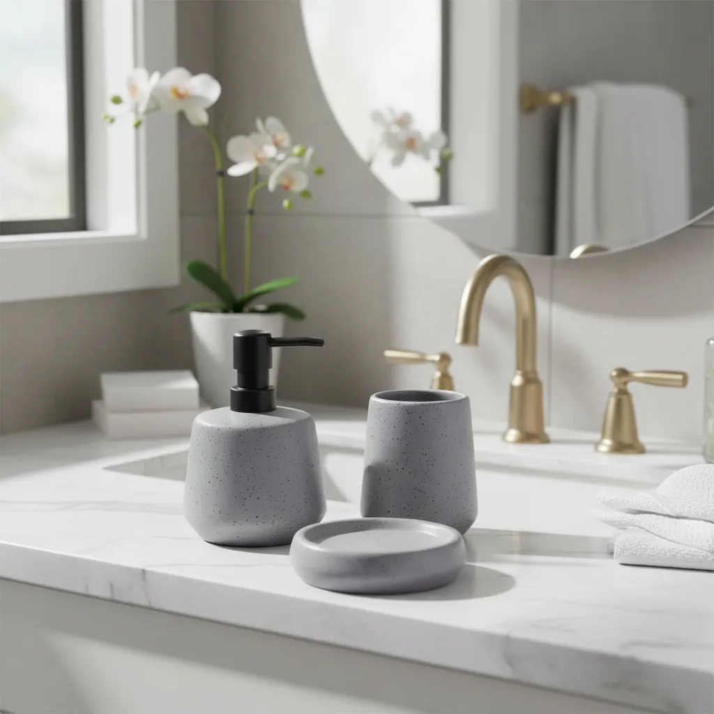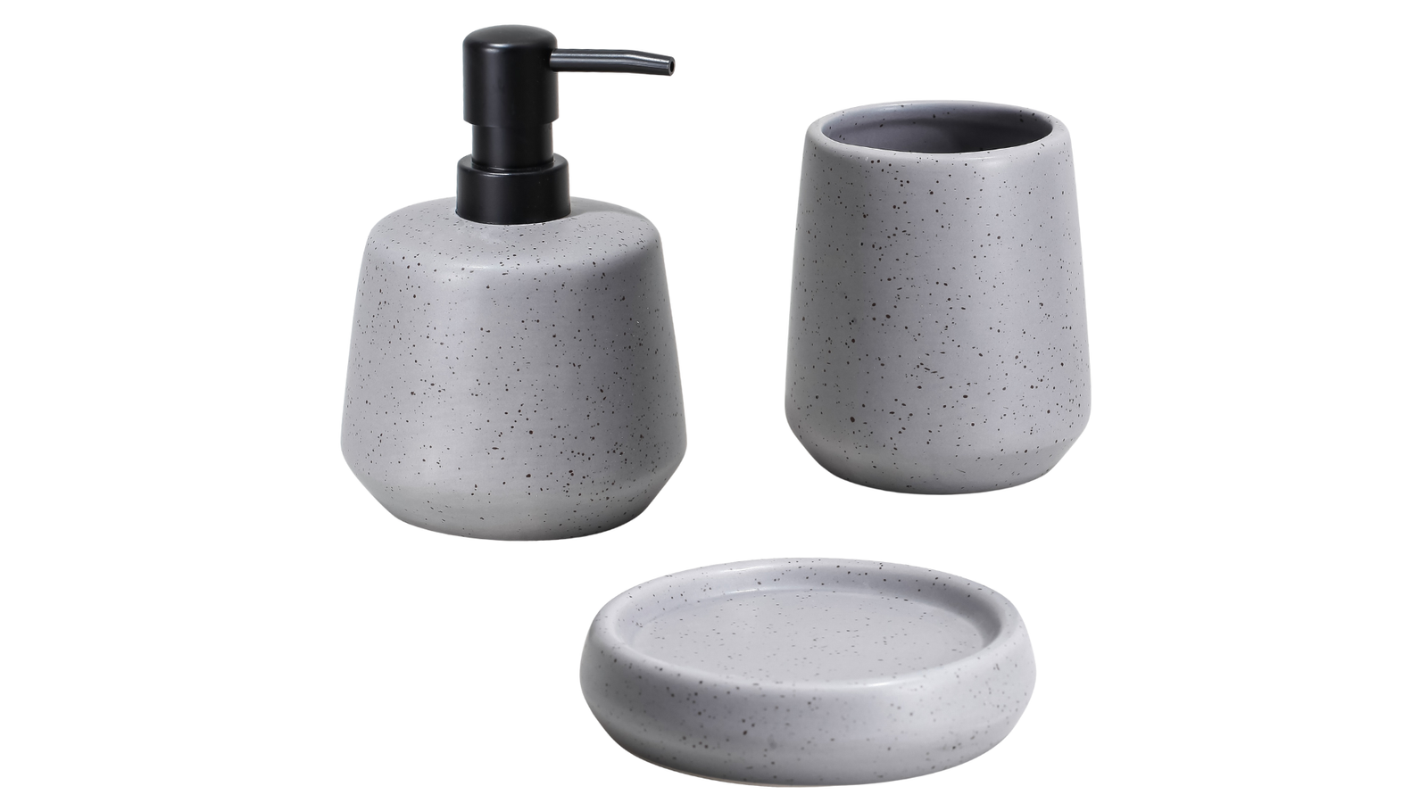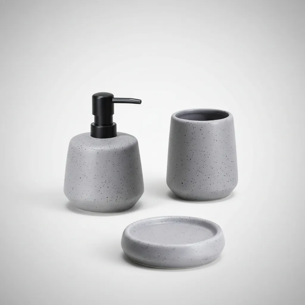 Set 3 Piezas Baño Cerámica Dispenser Vaso Jabonera Gris