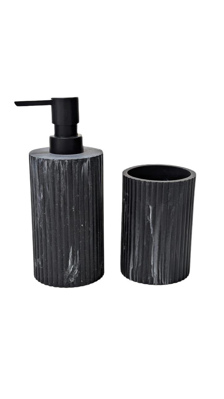 Set Baño 2 Pzas Resina Negro Marmolado Dispenser Vaso Premium