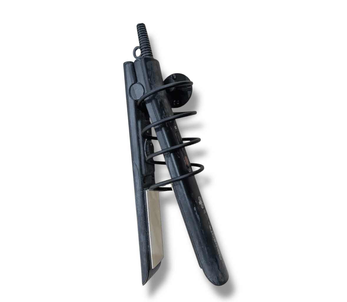 Mantén tu tocador organizado y seguro con este práctico y moderno soporte para planchita de pelo. Fabricado en bronce con un elegante acabado negro mate, su diseño en espiral no solo es estético, sino que también permite guardar la planchita de forma segura, incluso caliente. Se instala fácilmente en la pared, liberando espacio en tu mesada y aportando un toque de diseño industrial a tu baño o vestidor.
