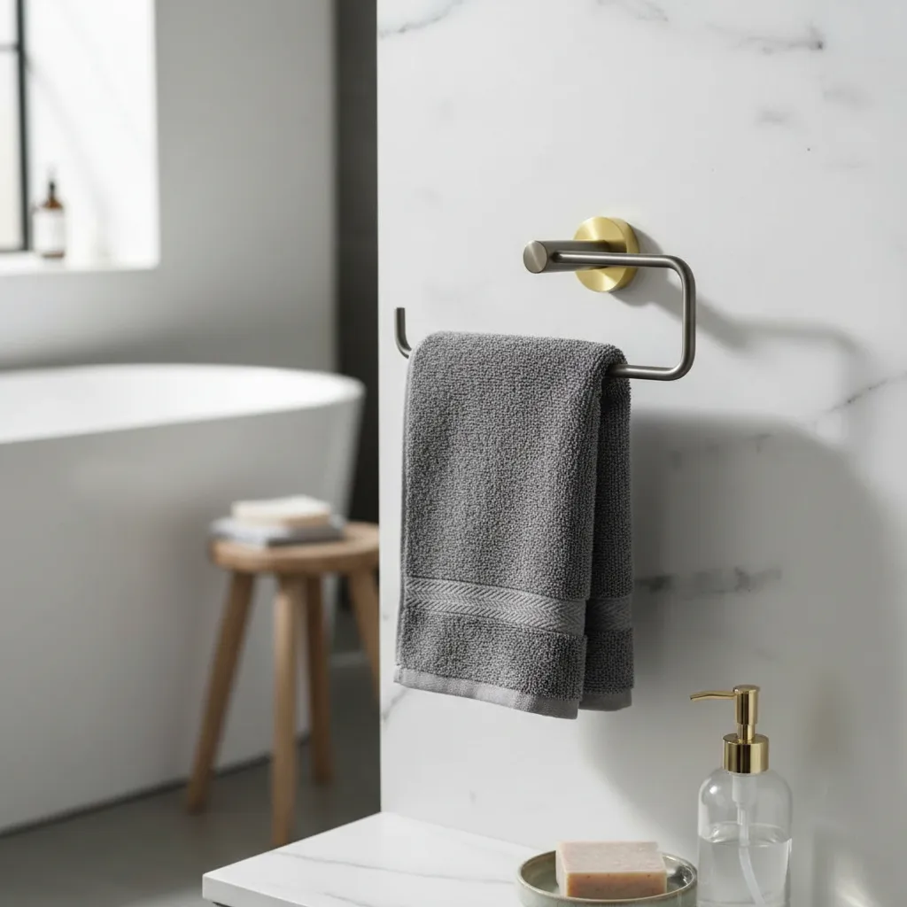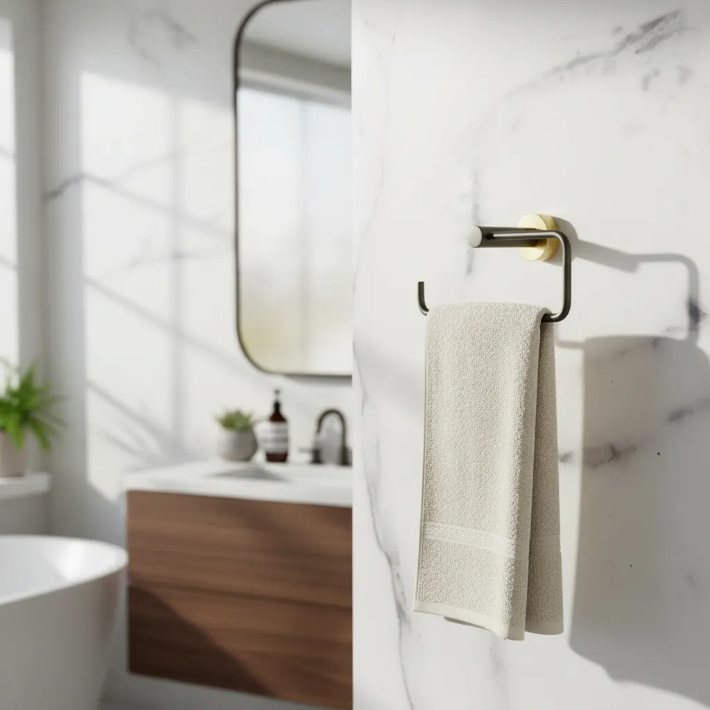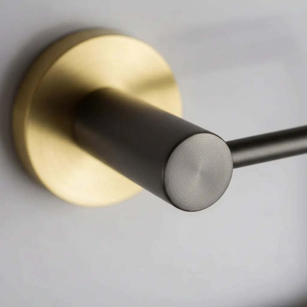 Accesorio de amurar. Bronce pintado en negro mate. Roseta pulida mate con laca.