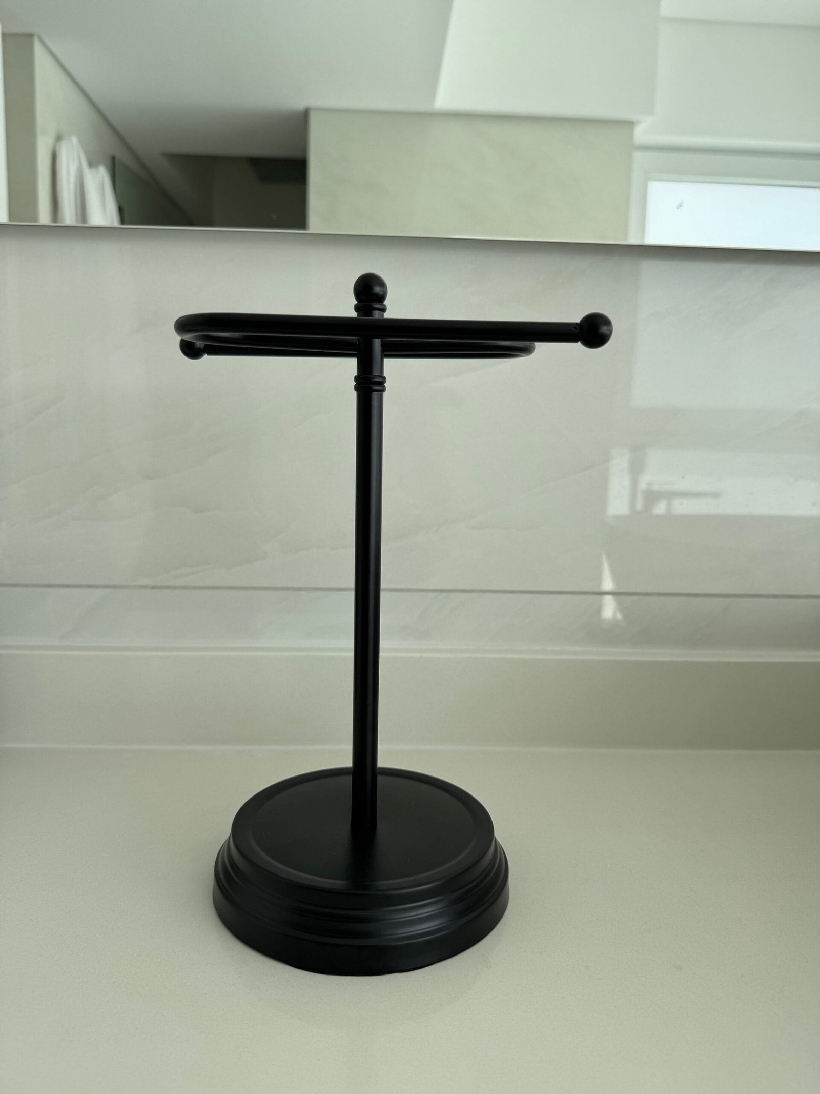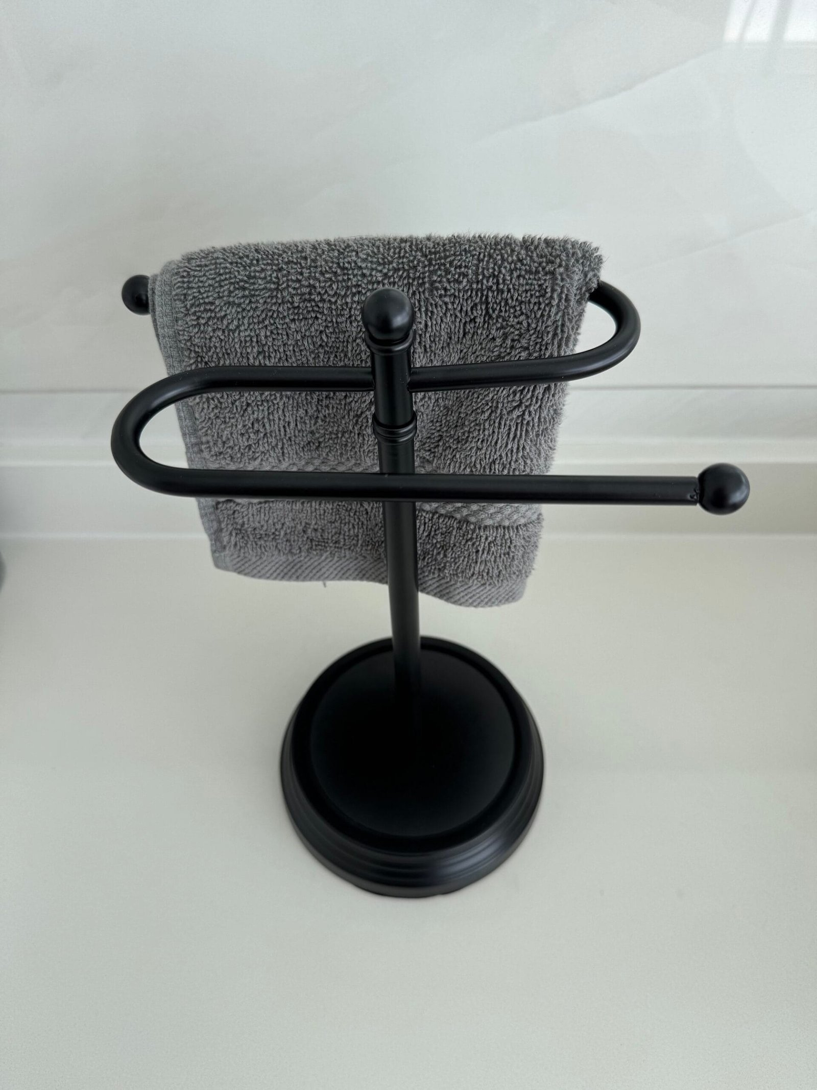 Diseño funcional: Cuenta con una estructura robusta y elegante, con un soporte de barra que permite colgar las toallas de forma cómoda y ordenada.
