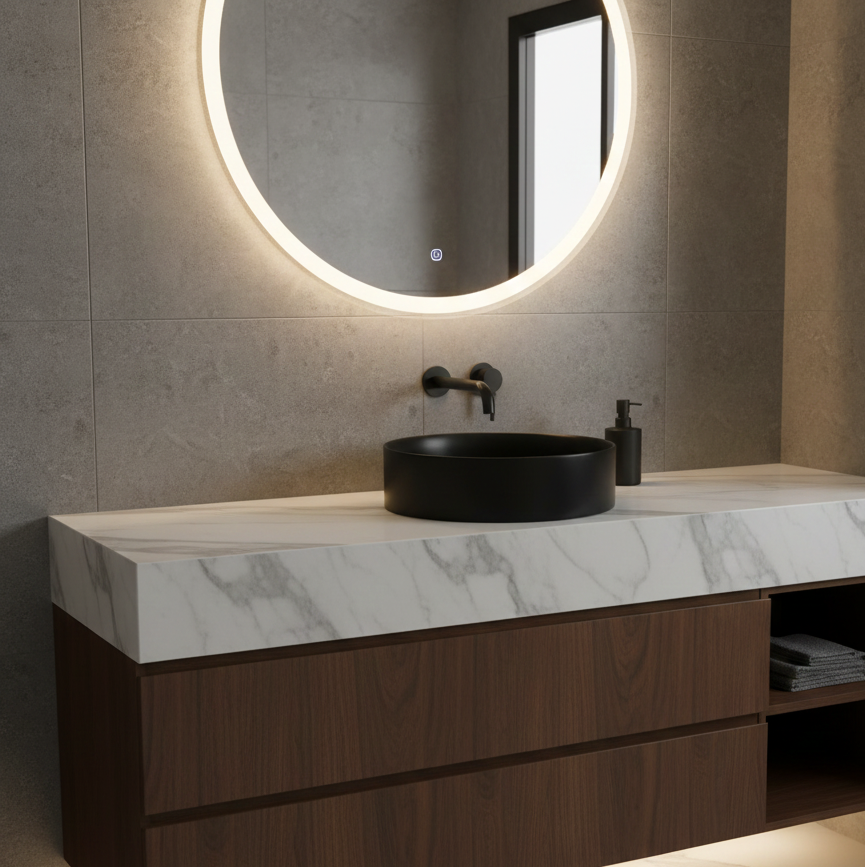 Griferia Lavatorio Monocomando Baño Bajo Flat Negro Mate